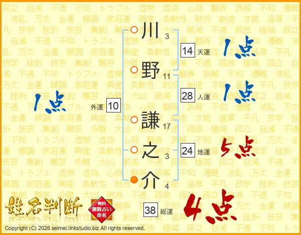 川野謙之介さんの総運は38画の4点!