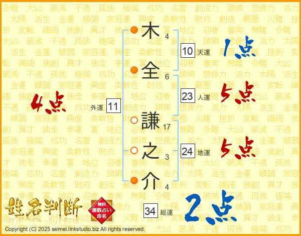 木(4画)全(6画) 謙(17画)之(3画)介(4画)