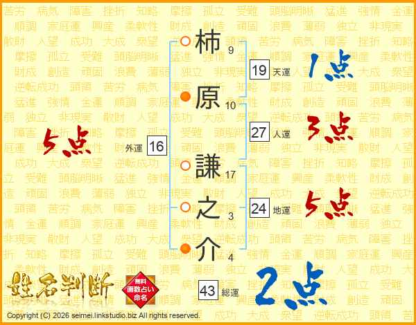 柿原謙之介さんの総運は43画の2点!