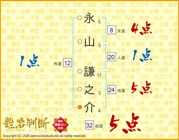 永山謙之介さんの総運は32画の5点!