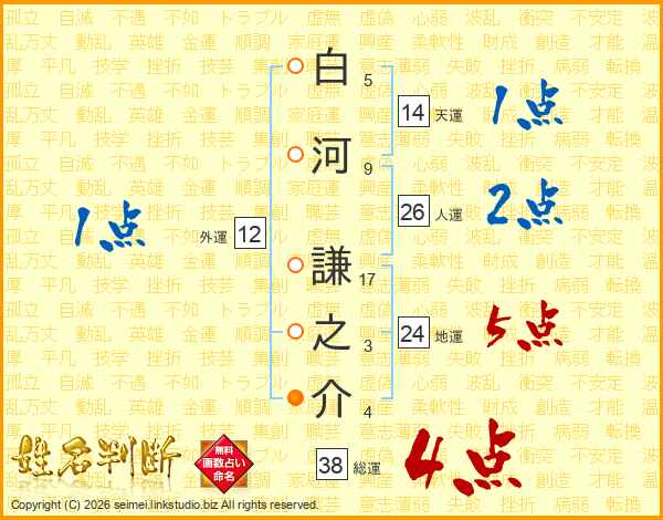 白河謙之介さんの総運は38画の4点!