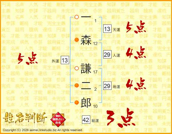 一森謙二郎さんの天運は13画の5点!
