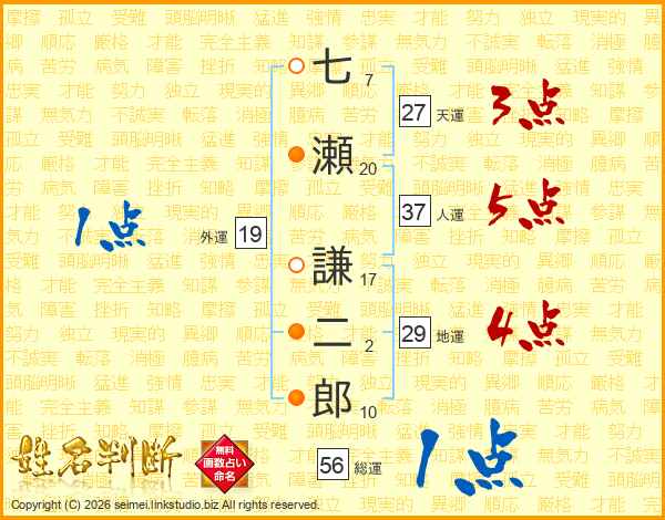 七瀬謙二郎さんの人運は37画の5点!