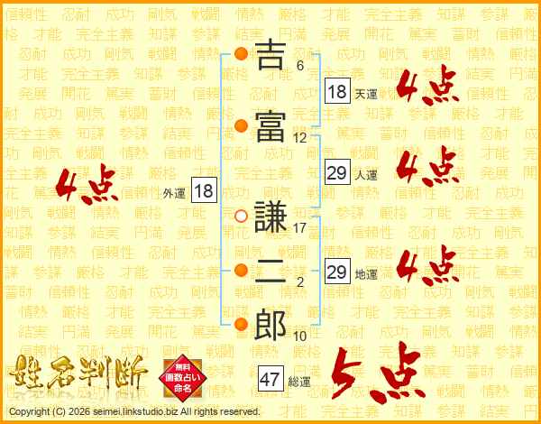 吉富謙二郎さんの総運は47画の5点!