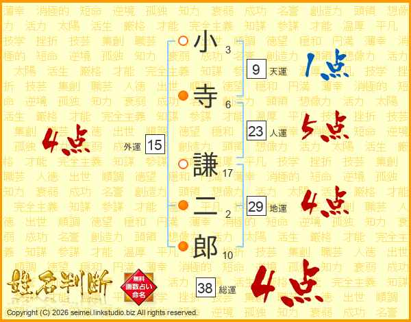 小寺謙二郎さんの総運は38画の4点!