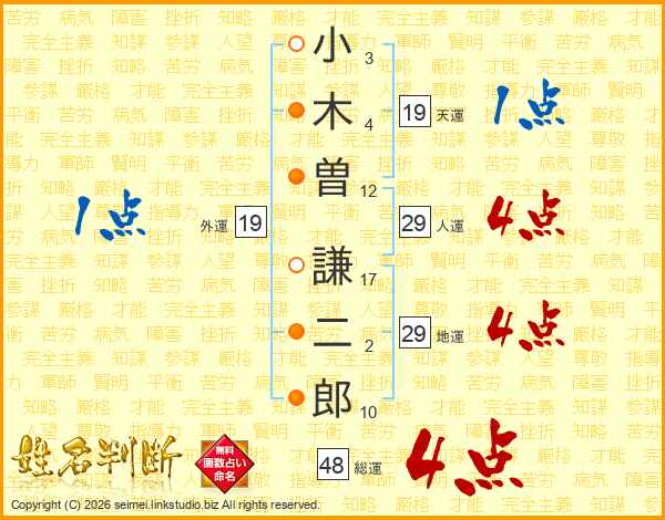 小木曽謙二郎さんの総運は48画の4点!