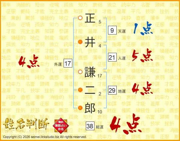 正井謙二郎さんの総運は38画の4点!