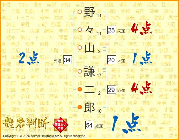 野々山謙二郎さんの総運は54画の1点!