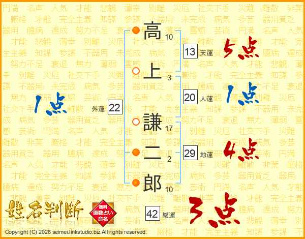 高上謙二郎さんの総運は42画の3点!