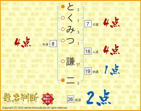 と(2画)く(1画)み(3画)つ(1画) 謙(17画)二(2画)