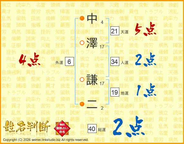 中澤謙二さんの天運は21画の5点!