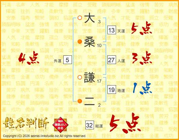 大桑謙二さんの総運は32画の5点!