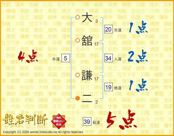 大舘謙二さんの総運は39画の5点!
