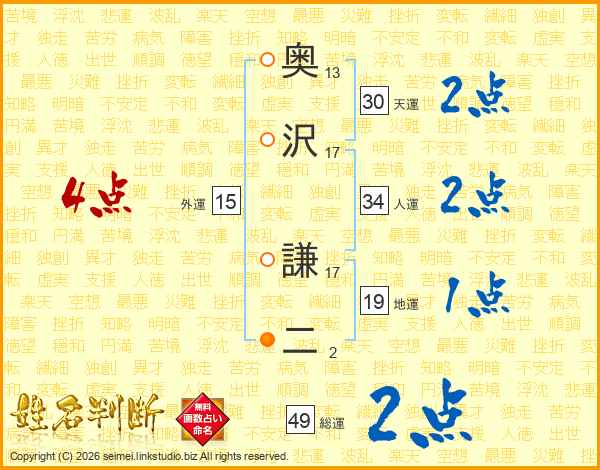 奥沢謙二さんの総運は49画の2点!