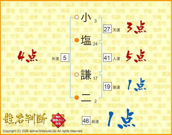 小塩謙二さんの人運は41画の5点!