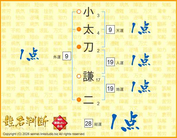 小太刀謙二さんの総運は28画の1点!