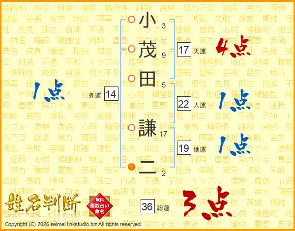 小茂田謙二さんの総運は36画の3点!