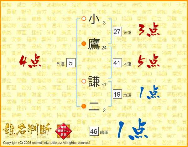 小(3画)鷹(24画) 謙(17画)二(2画)
