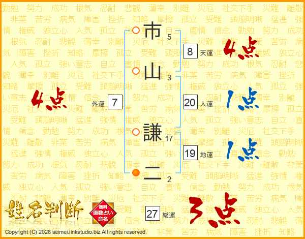 市山謙二さんの人運は20画の1点!