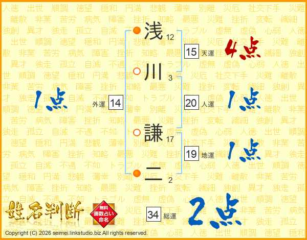 浅川謙二さんの総運は34画の2点!