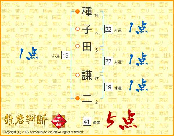 種(14画)子(3画)田(5画) 謙(17画)二(2画)