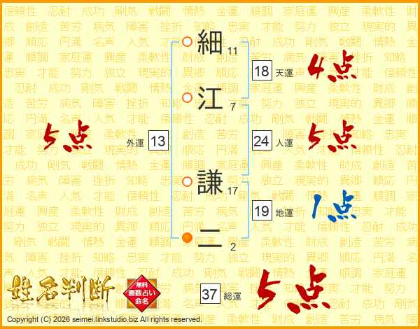 細江謙二さんの総運は37画の5点!