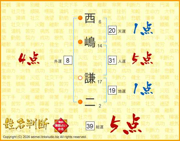 西嶋謙二さんの総運は39画の5点!