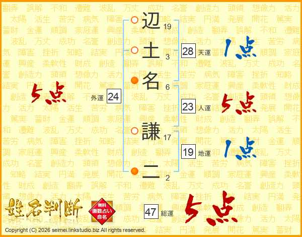 辺土名謙二さんの総運は47画の5点!