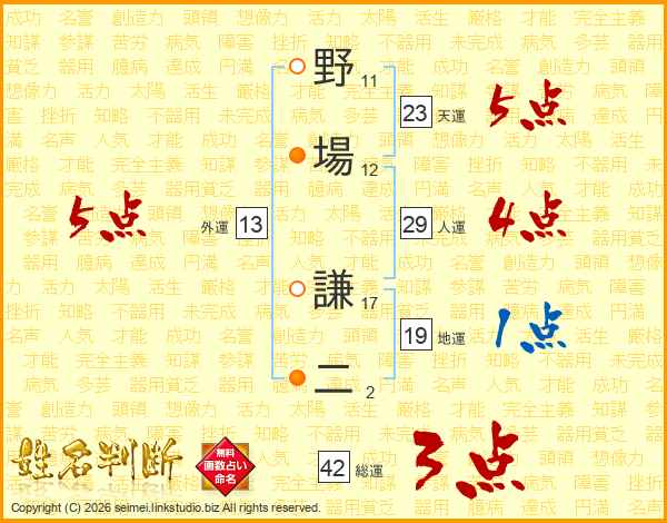 野場謙二さんの人運は29画の4点!