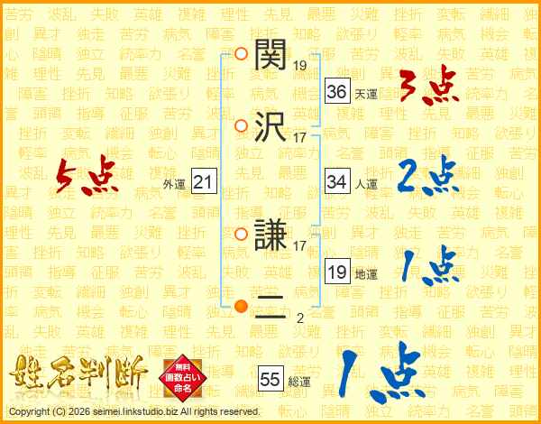 関沢謙二さんの総運は55画の1点!