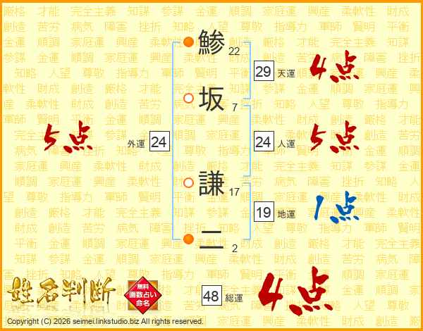 鯵坂謙二さんの総運は48画の4点!