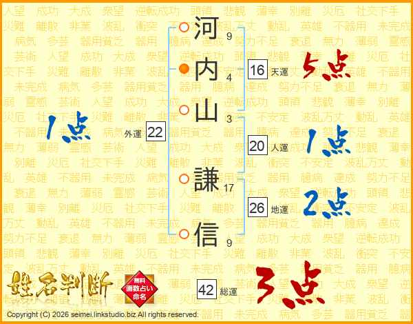 河内山謙信さんの総運は42画の3点!