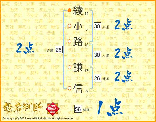 綾小路謙信さんの総運は56画の1点!