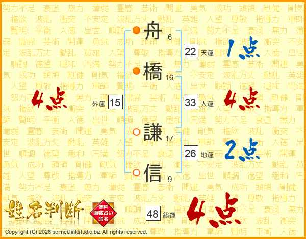 舟橋謙信さんの総運は48画の4点!