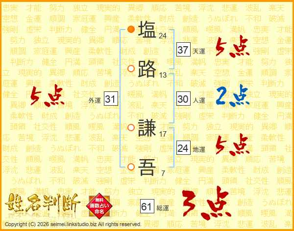 塩路謙吾さんの総運は61画の3点!