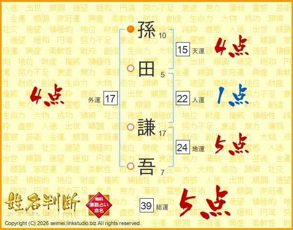 孫田謙吾さんの総運は39画の5点!
