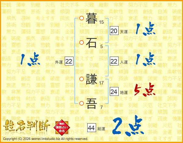 暮石謙吾さんの総運は44画の2点!
