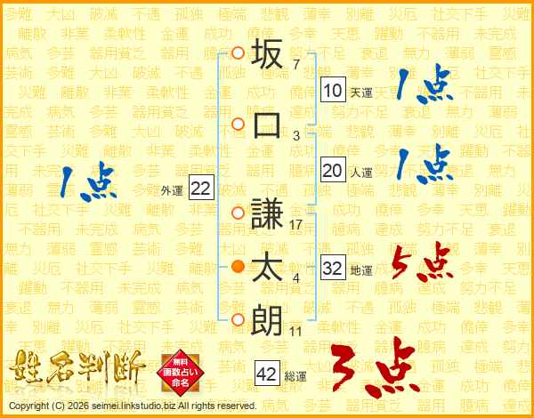 坂口謙太朗さんの地運は32画の5点!