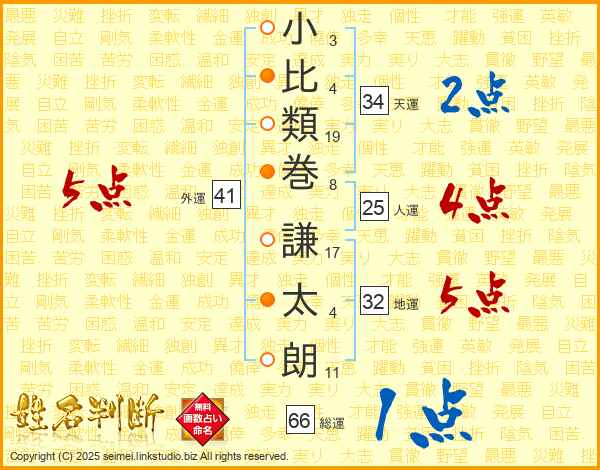小比類巻謙太朗さんの総運は66画の1点!
