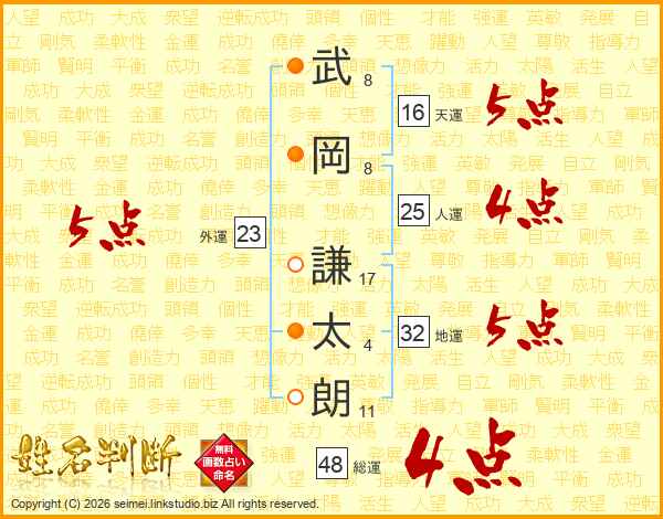 武岡謙太朗さんの総運は48画の4点!