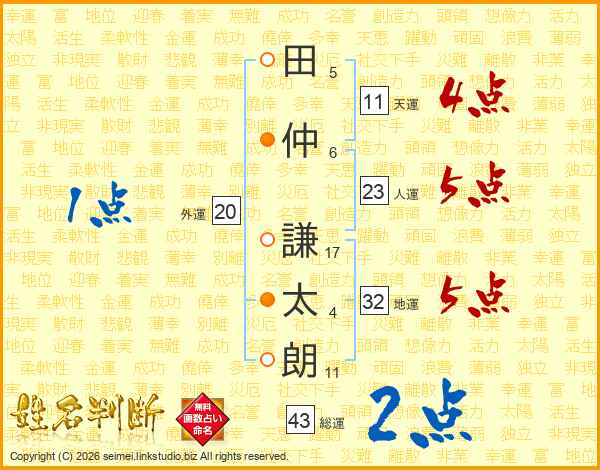 田仲謙太朗さんの総運は43画の2点!