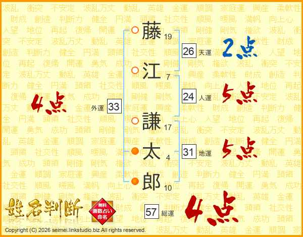 藤江謙太郎さんの総運は57画の4点!