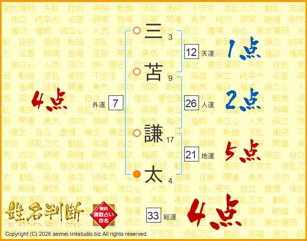 三苫謙太さんの総運は33画の4点!