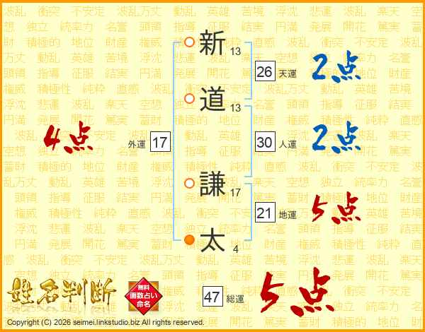 新道謙太さんの総運は47画の5点!