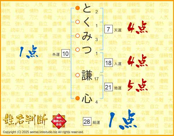 と(2画)く(1画)み(3画)つ(1画) 謙(17画)心(4画)