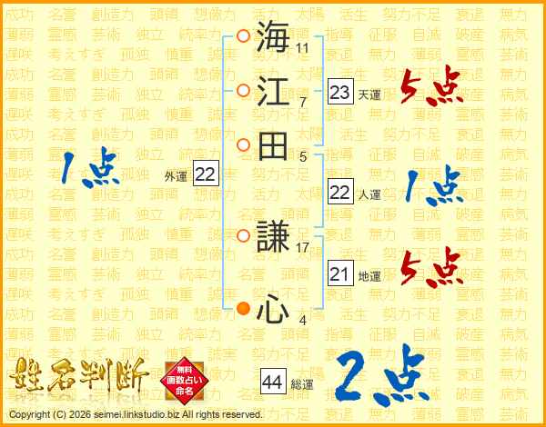 海江田謙心さんの総運は44画の2点!