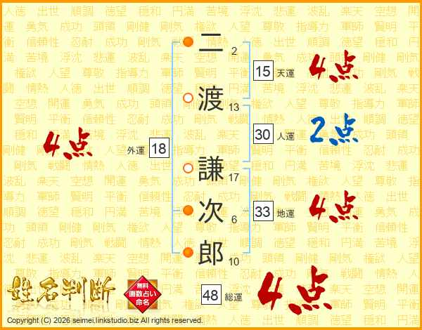 二渡謙次郎さんの総運は48画の4点!