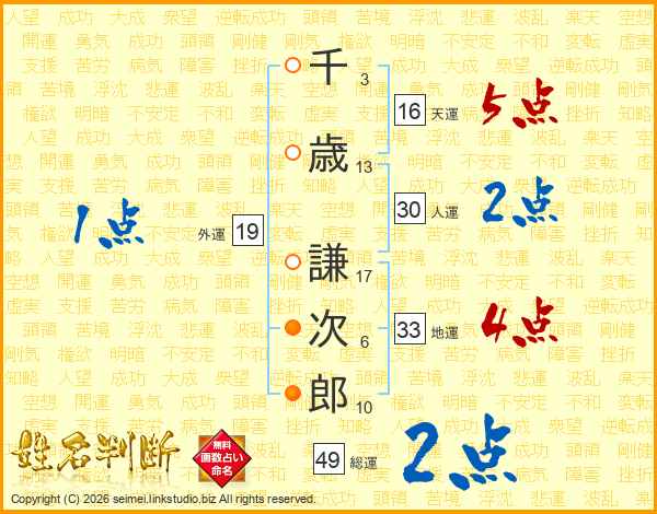 千歳謙次郎さんの総運は49画の2点!
