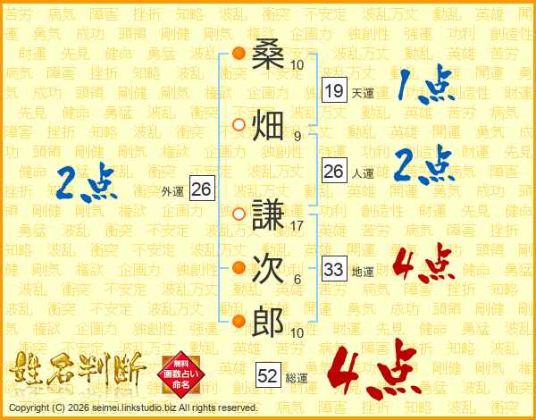 桑畑謙次郎さんの総運は52画の4点!