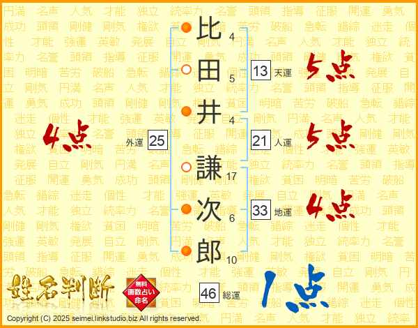 比田井謙次郎さんの総運は46画の1点!